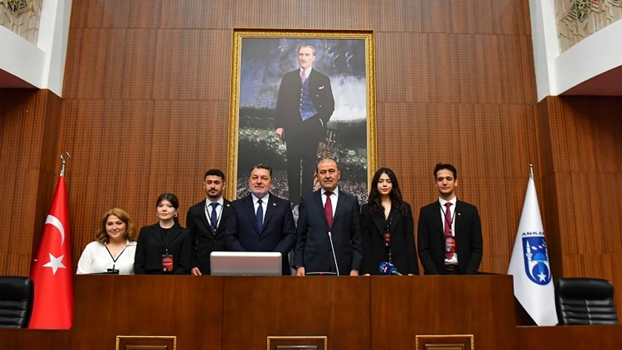ABB Başkan Vekili Faruk Köylüoğlu, “Ulu Önder Atatürk’ün bizlere emanet ettiği gençlere Başkanımız Mansur Yavaş ve vekili Ertan Işık Meclis’i birkaç günlüğüne emanet ediyor. Ortak akıl ile Ankara’mız için neler yapılabileceğine dönük kafa yoracaksınız. Bunu bir görev bilip burada bulunmanız çok kıymetli” diye konuştu.