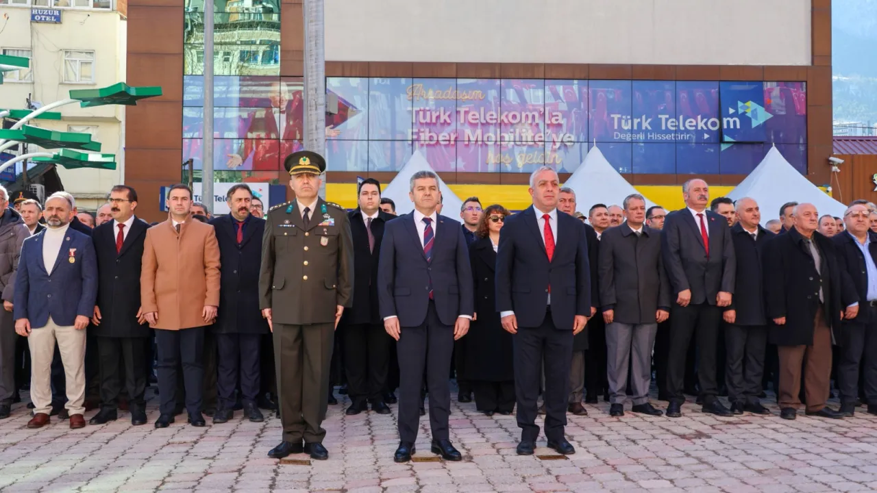 Milli İrade Meydanı’nda gerçekleştirilen törende, Vali Turan Ergün, Garnizon Komutanı Piyade Albay Muhammet Kelami Kablay ve Belediye Başkanı Bilgehan Erdem, Atatürk Anıtı'na çelenk sundu.