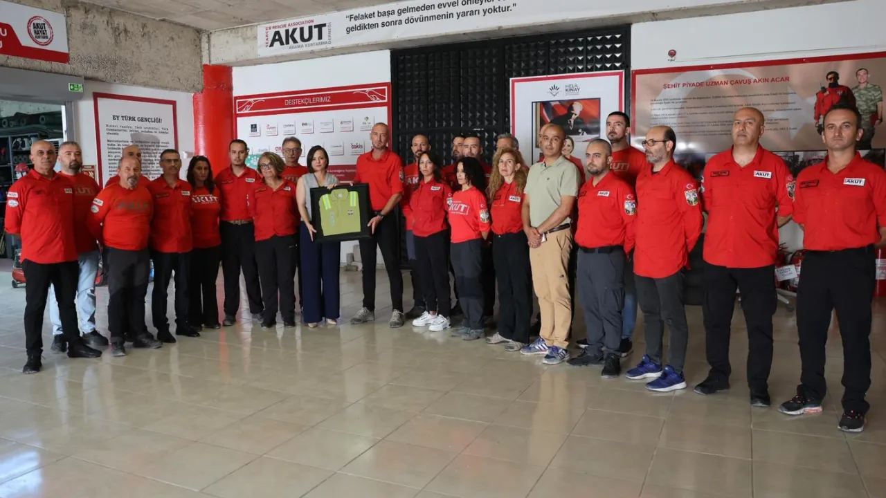Ziyaretin sonunda Başkan Helil Kınay’a, yangınlarda kullanılan bir AKUT tişörtü günün anısına hediye edildi.