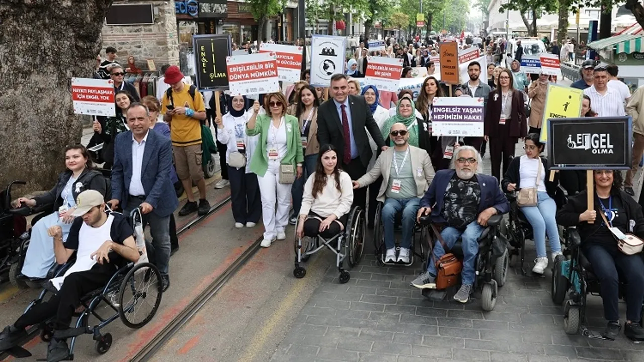 Bursa Büyükşehir Belediyesi tarafından özel gereksinimli bireylerin gündelik hayattaki rolünü artırmak, karşılaştıkları gerçek engellere dikkat çekmek ve dayanışmayı büyütmek amacıyla ‘Engelsiz Bursa Buluşması’ düzenlendi.BURSA (İGFA) - Bursa’nın daha yaşanılabilir ve daha ulaşılabilir hale gelmesi için hayatı kolaylaştırıcı çözümler üreten Büyükşehir Belediyesi, 10-16 Mayıs Engelliler Haftası kapsamında herkesin eşit ve mutlu yaşadığı bir Bursa için ‘Engelsiz Bursa Buluşması’ düzenledi. Sosyal Hizmetler Dairesi Başkanlığı Engelli Hizmetleri Şube Müdürlüğü aracılığıyla, Bursa Kent Konseyi Engelliler Meclisi ve engelli sivil toplum kuruluşlarının katkılarıyla düzenlenen buluşma, Cumhuriyet Caddesi Çancılar girişinden başlayıp Hanlar Bölgesinde son bulan kortej yürüyüşüyle başladı. Yürüyüşe özel gereksinimli bireyler ile birlikte Bursa Büyükşehir Belediyesi Başkanvekili Mehmet Aydın Saldız da katıldı. Büyükşehir Belediyesi Bandosu eşliğinde yapılan yürüyüşte, vatandaşlar ellerinde taşıdıkları dövizlerle engelsiz yaşam haklarına dikkat çekti.