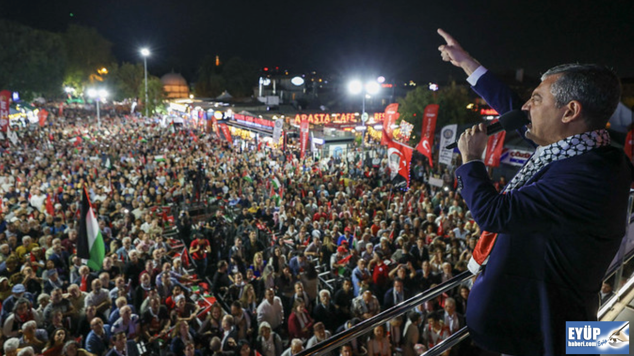 Cumhuriyet Halk Partisi Genel Başkanı Özgür Özel, İstanbul Eyüpsultan’da gerçekleştirilen Filistin’e Destek Mitingi’ne katıldı. Burada konuşan Cumhuriyet Halk Partisi Lideri Özel, “Peygamberimizin sancaktarı Eyüp Sultan hazretlerinin huzurundayız. Fetih duasının kabul edildiği topraklardayız. Semt-i mukaddesin, İstanbul’un kalbindeyiz. Bu sokaklar sabrı da bilir, zulme dayanmayı da bilir, şükretmeyi de bilir, direnmeyi de bilir. İçinde bulunduğumuz, Türkiye’nin içinde bulunduğu, partimizin içinde bulunduğu bu zorlu günlerde hepimizin gözünün, kulağının olduğu; bir insanlık ayıbının, dramının, bir soykırımın yaşadığı Filistin’de, Gazze’de çarpan yürekler için bugün 56’ncı buluşmamızı, 56’ncı eylemimizi Eyüpsultan’da Filistin için yapıyoruz. Hepiniz hoş geldiniz” dedi. Özel, şunları söyledi: