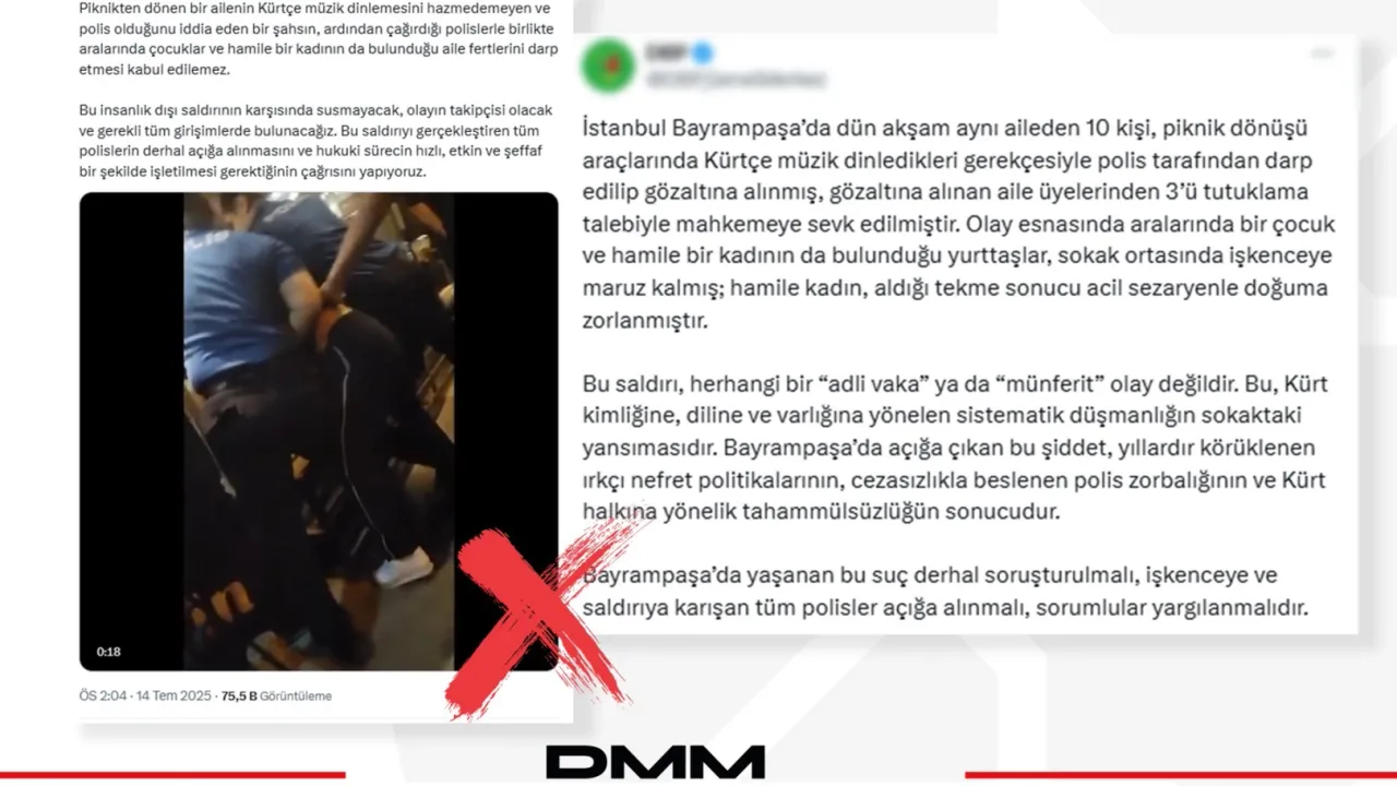 Dezenformasyonla Mücadele Merkezi, İstanbul Bayrampaşa’da yaşanan asayiş olayının etnik kimlik veya müzik tercihiyle ilgisi olmadığını, olayın görevli memura mukavemet ve kamu düzenini bozma çerçevesinde değerlendirildiğini açıkladı.ANKARA (İGFA) -Dezenformasyonla Mücadele Merkezi, İstanbul’un Bayrampaşa ilçesinde yaşanan bir asayiş olayına ilişkin bazı basın organları ve sosyal medya hesaplarında dolaşıma giren iddiaların dezenformasyon içerdiğini ve gerçeği yansıtmadığını duyurdu.