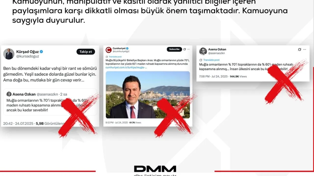 Enerji ve Tabii Kaynaklar Bakanlığı, sosyal medyada “Muğla ormanlarının yüzde 70’i ve topraklarının yüzde 60’ı maden ruhsatı kapsamında” şeklindeki iddiaları yalanladı. Bakanlık, Muğla’da madencilik faaliyetinin il yüzölçümünün yalnızca yüzde 0,44’ünü kapsadığını, ülke genelinde orman alanlarında madenciliğin ise binde 3 seviyesinde olduğunu açıkladı.ANKARA (İGFA) - Enerji ve Tabii Kaynaklar Bakanlığı, sosyal medyada Muğla’daki maden ruhsatlarına ilişkin yayılan “ormanların yüzde 70’i, toprakların yüzde 60’ı maden ruhsatı kapsamında” iddialarını dezenformasyon olarak nitelendirdi.