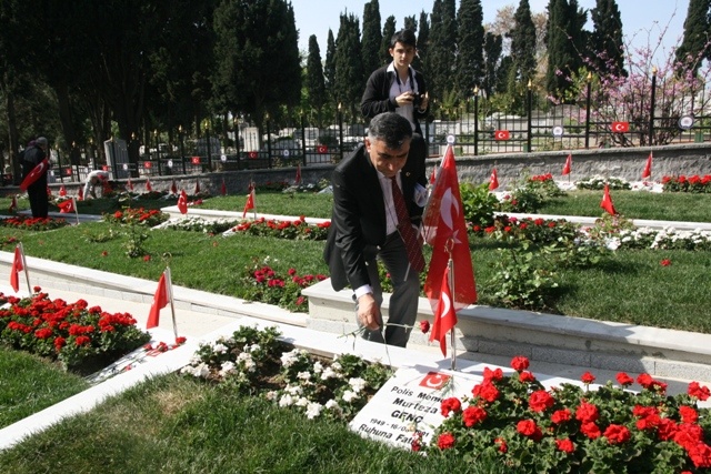 Türk Polis teşkilatının kuruluşunun 171'inci yıl dönümü nedeniyle, Emekli Polis memurları Yardımlaşma Ve Dayanışma Derneği (EMPOLMED) yöneticileri ve üyeleri bugün İstanbul'da Edirnekapı Şehitliği'nde bulunan Polis Şehitliğini ziyarette bulundular.