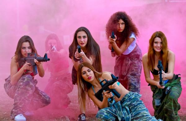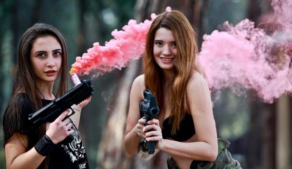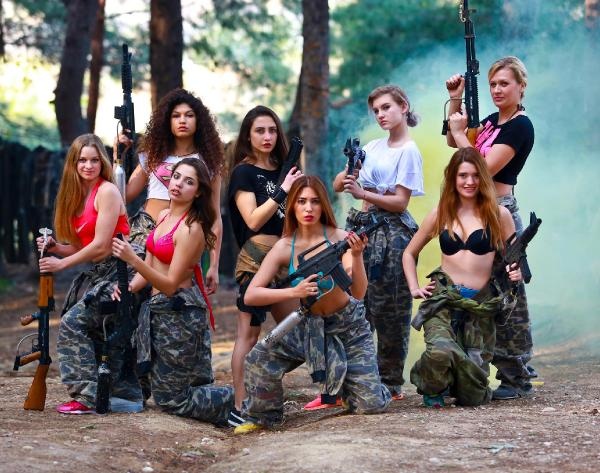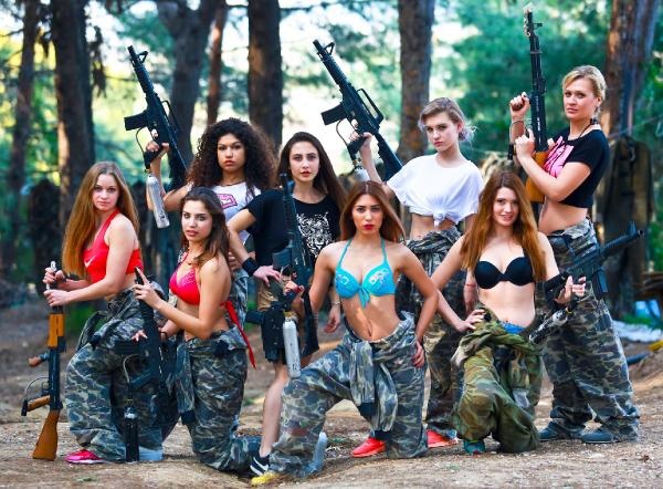 Oyun öncesi ellerinde paintball silahları ile hatıra fotoğrafı çeken mankenler, sosyal paylaşım sitelerinde paylaştı. Elinde silah, üzerinde kamuflaj ve bikini ile poz veren mankenler, çevredekilerin meraklı bakışları arasında oyunlarını oynadı.