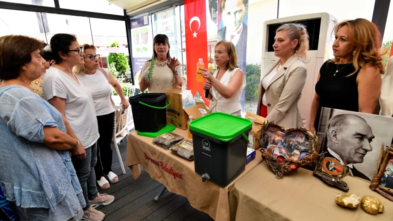 Serginin ardından gerçekleşen söyleşide Zeytice Ekolojik Yaşamı Destekleme Derneği’nden Doç. Dr. Meneviş Uzbay Pirili, karbon ayak izi ölçümü gerçekleştirirken, İZYAŞAM Kadın Kooperatifi Başkanı Nevin Bağdatlı da organik atıkların geri dönüşümü hakkında sunum yaptı. Ayrıca bokashi kovası ve tamburla kompost üretimi atölyesi düzenlendi. Katılımcılara su tasarrufu sağlayan perlatörler dağıtılarak günlük yaşamda uygulanabilir çözümler sunuldu.