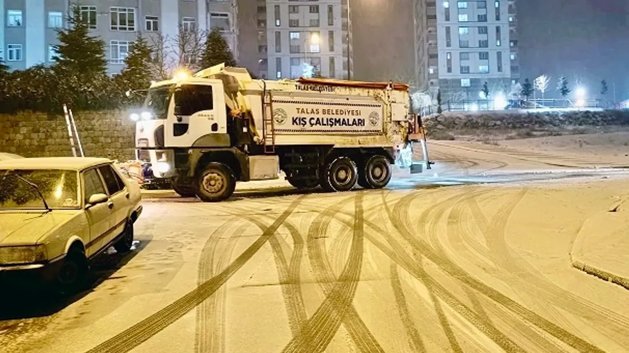 Talas Belediyesinde kış çalışmalarına ara verilmiyor. 90 kişiden oluşan ekipler, faaliyetlerini 2 vardiya halinde gece gündüz demeden sürdürüyor.