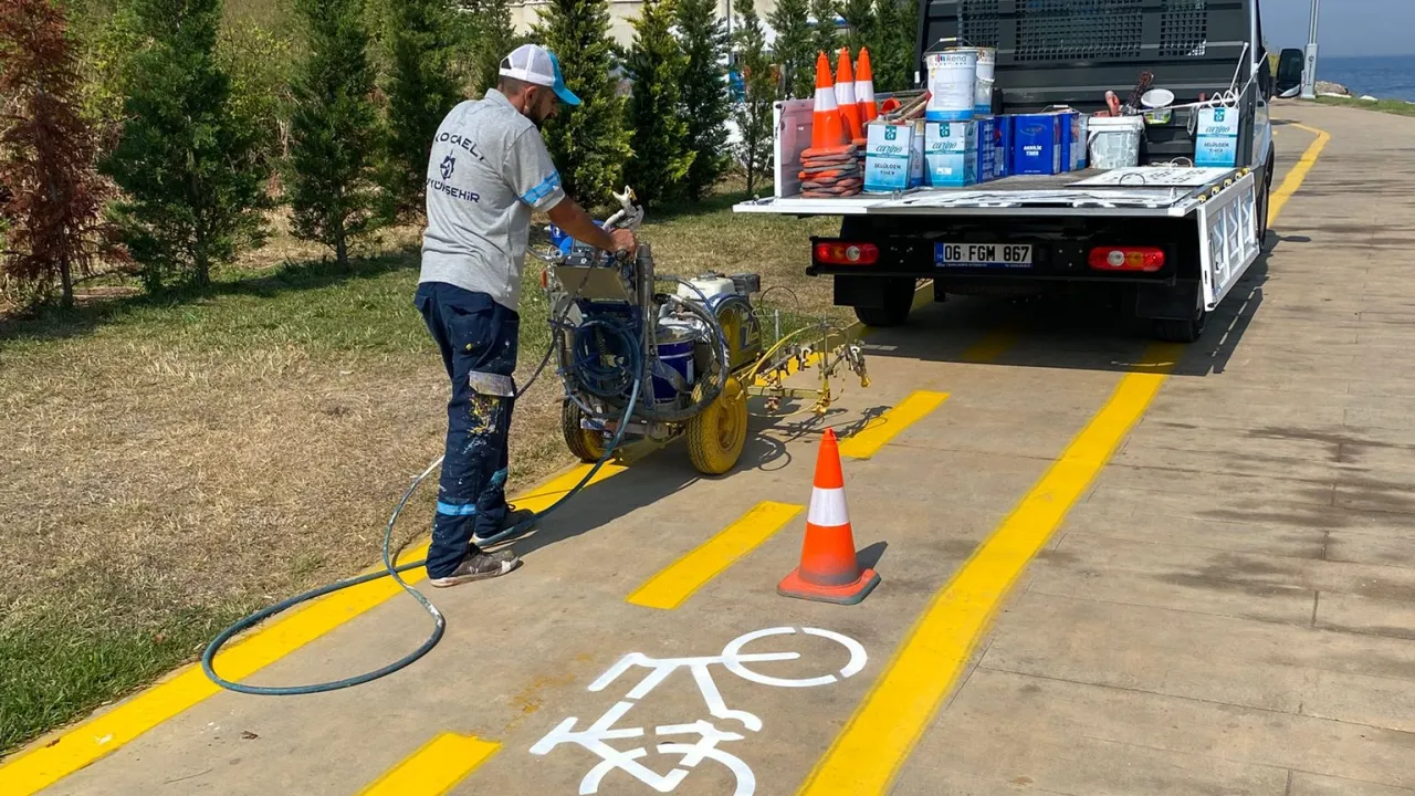 Kocaeli Büyükşehir Belediyesi, bisiklet yollarını daha güvenli ve konforlu hale getirmek için başlattığı detaylı çalışma çerçevesinde bisiklet yollarının çizgilerini yeniliyor. Yapılan çalışma, bisiklet kullanıcılarına daha güvenli sürüş imkânı tanıyor.KOCAELİ (İGFA) - Kocaeli Büyükşehir Belediyesi, kent genelindeki bisiklet yollarının çizgilerini yenileyerek bisikletli ulaşımı daha güvenli ve rahat hale getiriyor. Bu çalışma, bisiklet kullanıcılarının şehir içindeki seyahatlerini daha konforlu yapmalarını sağlıyor. Yenilenen bisiklet yolu çizgileri, trafikteki bisiklet kullanıcıları için daha güvenli bir alan oluşturuyor. Bisiklet yolları, daha belirgin ve araçlardan ayrı bir şekilde düzenlenerek olası kazaların önüne geçilmesi hedefleniyor.