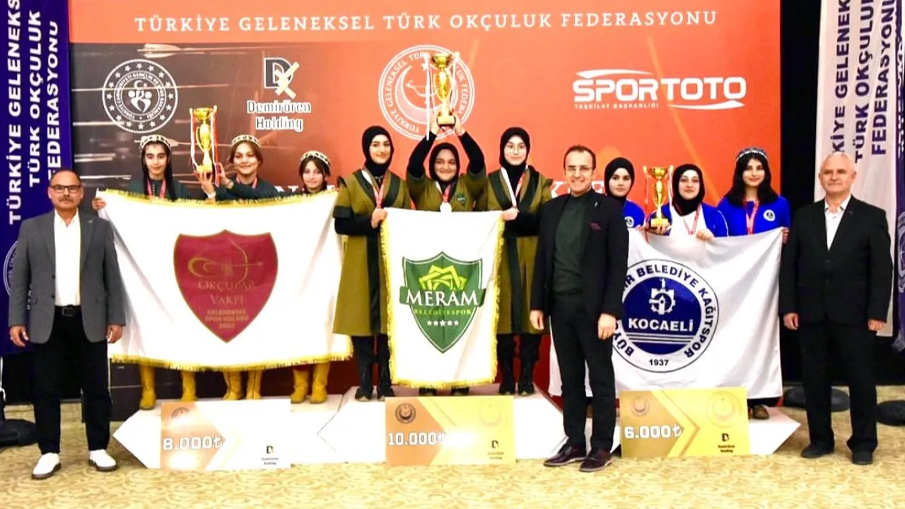 Türkiye Geleneksel Türk Okçuluğu Federasyonu tarafından düzenlenen ve yaklaşık 400 sporcunun katılımıyla gerçekleşen Gençler-Büyükler Salon Türkiye Şampiyonası’nda Meram Belediyespor Kulübü adeta kürsüye ambargo koydu.KONYA (İGFA) - Meram Belediyespor, Türkiye Geleneksel Türk Okçuluğu Federasyonu tarafından düzenlenen ve yaklaşık 400 sporcunun katılımıyla gerçekleşen Gençler-Büyükler Salon Türkiye Şampiyonası’nda adeta madalya şovu yaptı.