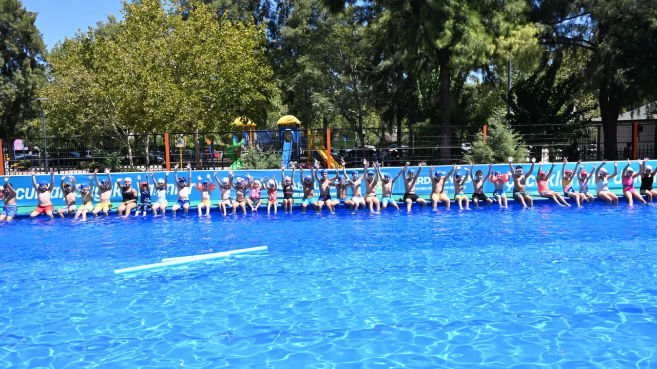 Manisa Büyükşehir Belediyesi, çocukların daha keyifli bir yaz tatili geçirmesi için başlattığı ‘Havuzlar Bizden, Mutlu Gülüşler Sizden’ projesiyle mahallelerde portatif havuzları çocuklarla buluşturuyor.MANİSA (İGFA) - Manisa Büyükşehir Belediyesi park, okul bahçeleri ve mahallelerde yüzme havuzlarını çocuklarla buluşturuyor. Büyükşehir Belediyesi’nin, çocukların yaz tatilinde keyifle zaman geçirmesi için başlattığı ‘Havuzlar Bizden, Mutlu Gülüşler Sizden’ projesi ile çocuklar hem spora teşvik ediliyor hem de sosyalleşiyor. Ücretsiz, güvenli ve eğlenceli portatif yüzme havuzlarında 6-13 yaş arası çocuklar, uzman eğitmenler eşliğinde suyla buluşuyor ve sıcak yaz günlerinde serinleyerek birlikte, eğlenceli zaman geçiriyor.