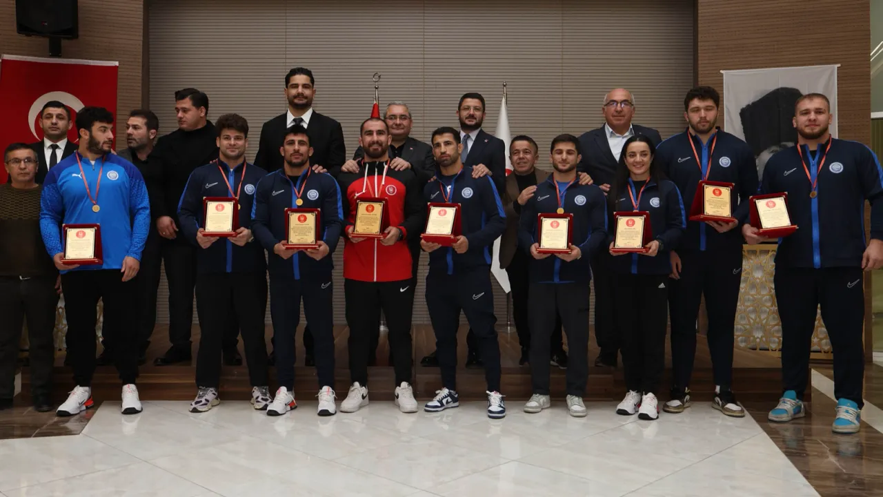 2025 yılı Büyükler Türkiye Güreş Şampiyonası’nda önemli başarıya imza atan Ankara Büyükşehir Belediyesi ASKİ Spor Kulübü ve Keçiören Belediyesi Spor Kulübü sporcuları için ödül töreni düzenlendi. Sporcular ödüllerini Keçiören Belediye Başkanı ve ASKİ Spor Kulübü Başkanı Dr. Mesut Özarslan, Türkiye Güreş Federasyonu Başkanı Taha Akgül, CHP Keçiören İlçe Başkanı Berk Kılıç, Keçiören Belediyesi Spor Kulübü Başkanı Abdullah Çakmar, Olimpiyat İkincisi, Avrupa ve Dünya Şampiyonu Milli Güreşçi Rıza Kayaalp ve Avrupa ve Dünya Şampiyonu Eski Milli Halterci Halil Mutlu’dan aldılar.ANKARA (İGFA) - Ankara Keçiören Neşet Ertaş Kültür Merkezi’nde düzenlenen ödül töreni, 2025 yılı Büyükler Türkiye Güreş Şampiyonası’nda grekoromen ve serbest stilde takım halinde şampiyon olan ASKİ Spor Kulübü ve Keçiören Belediyesi Spor Kulübü sporcularını ile antrenörlerini bir araya getirdi. 21-26 Ocak tarihleri arasında düzenlenen Serbest ve Grekoromen Stil Türkiye Güreş Şampiyonası’nda 7'si altın olmak üzere toplam 20 madalya ile takım halinde şampiyon olan ASKİ Spor Kulübü ile turnuvaya ilk kez katılarak takım halinde ikinci olan Keçiören Belediyesi Spor Kulübü sporcuları ödüllerini aldı.