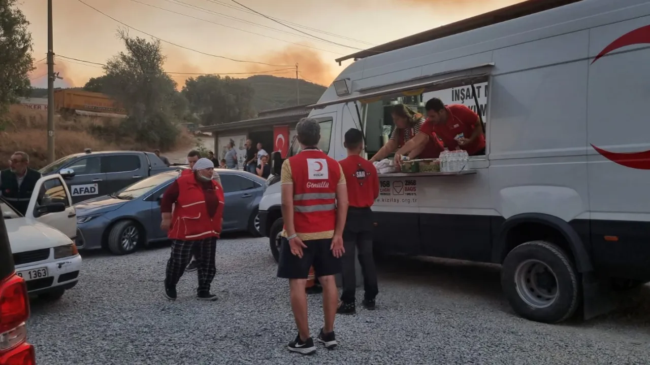 Yangınla mücadele ekipleri ve yangından etkilenen vatandaşları yalnız bırakmayan Türk Kızılay, olası yangınlara karşı teyakkuz halinde çalışmayı sürdürüyor.