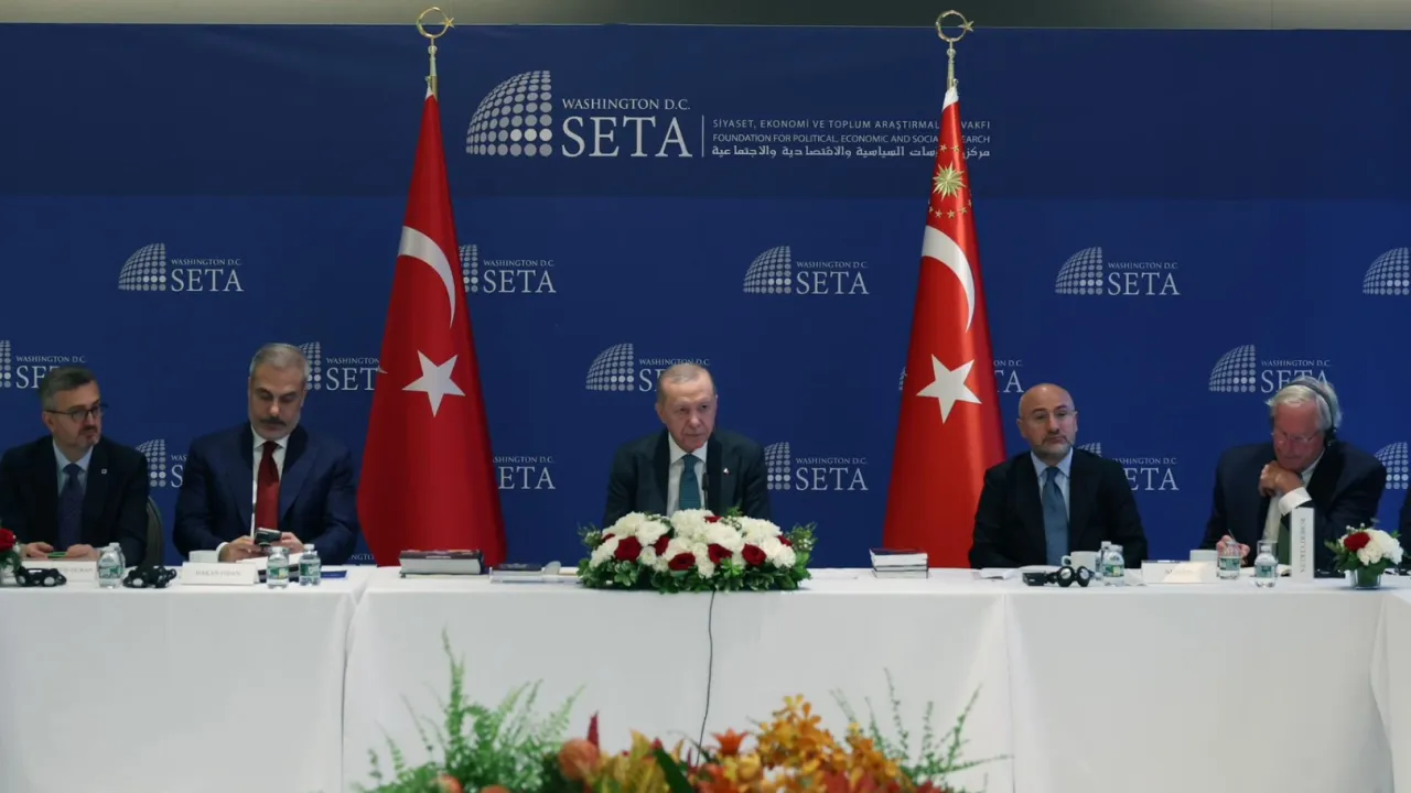 Cumhurbaşkanı Recep Tayyip Erdoğan, Birleşmiş Milletler Genel Kurulu dolayısıyla bulunduğu New York'ta ABD’li düşünce kuruluşu temsilcileriyle bir araya geldi.ABD (İGFA) - Cumhurbaşkanı Recep Tayyip Erdoğan, Birleşmiş Milletler 80'inci Genel Kurulu dolayısıyla bulunduğu New York'ta, Türkevi'nde ABD'li düşünce kuruluşu temsilcileriyle Siyaset, Ekonomi ve Toplum Araştırmaları Vakfı (SETA) eş güdümünde düzenlenen toplantıya katıldı.