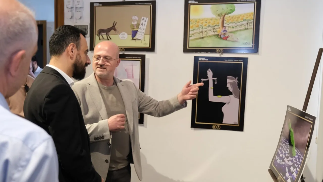 Ulusal ve uluslararası yarışmalarda çeşitli ödüller kazanmış toplamda 46 karikatürün yer aldığı sergi törenle açıldı.